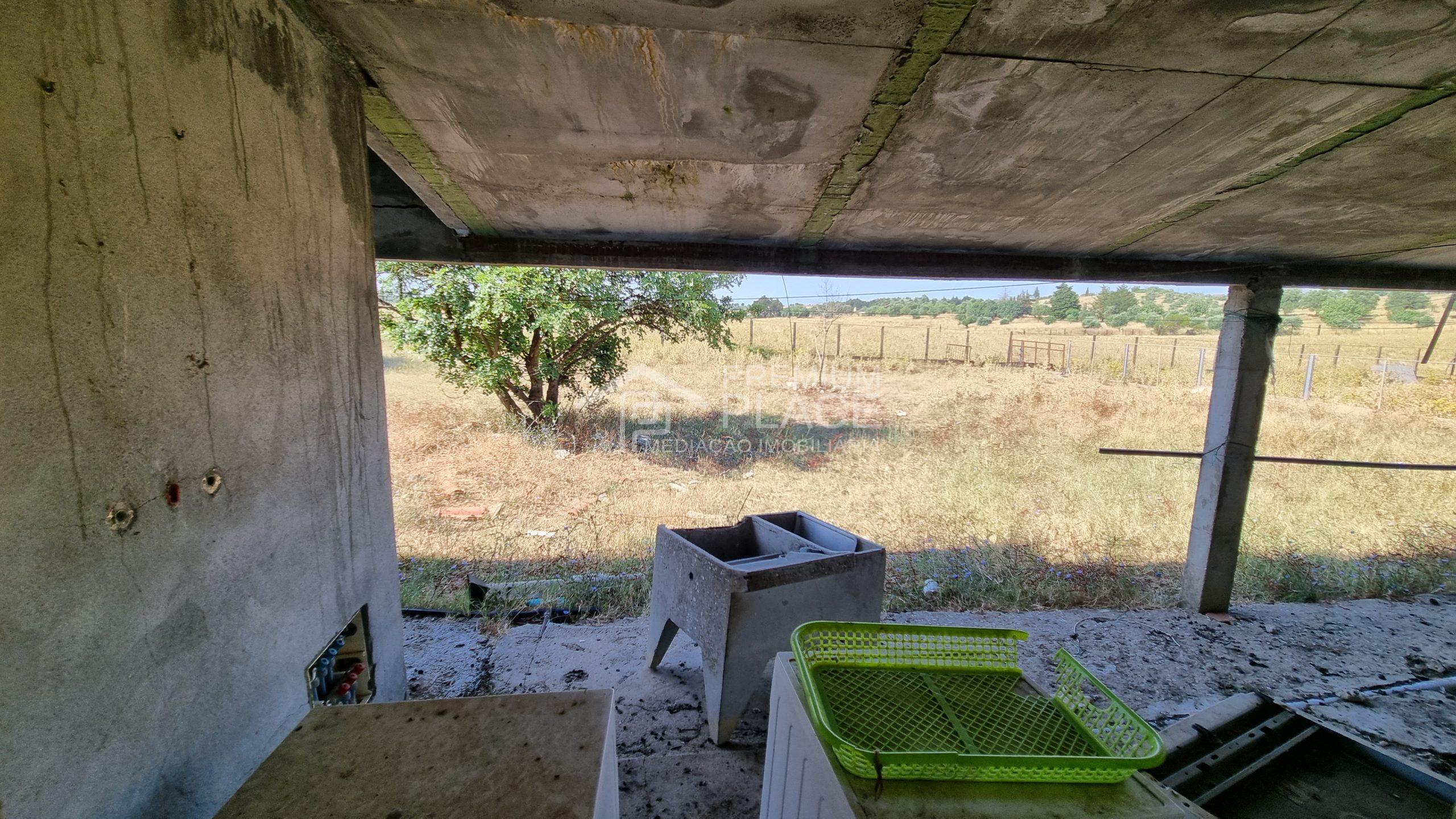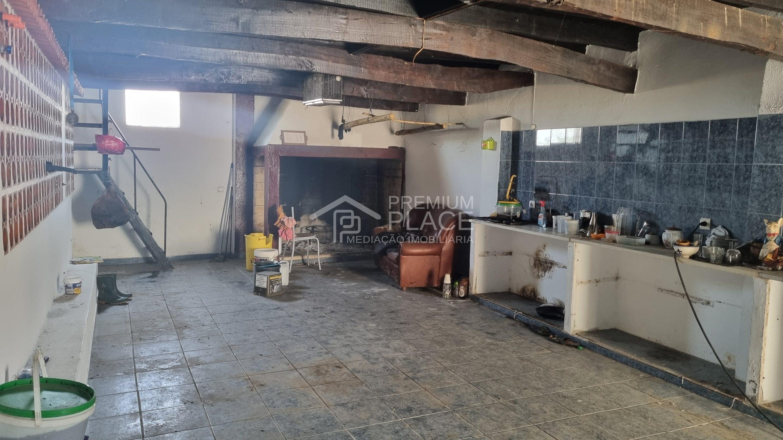 No 2º corpo com 2 divisões destinados a garagem e recolha de lenha, com a área coberta de 161m2 e logradouro com a área de 5922m2, no qual existe um poço* de água nativa, 1 cabine pertença da Câmara Municipal de Santarém.