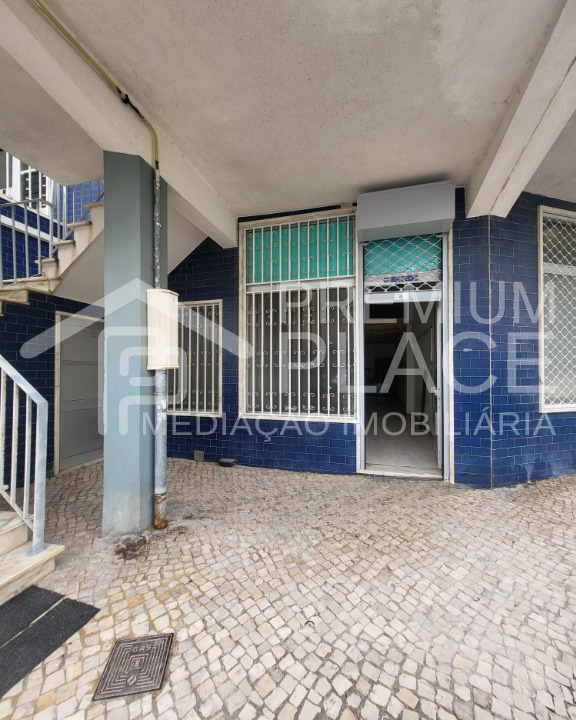Na fachada podemos verificar uma montra com grade fixa e grade de lagarta para proteção da entrada da loja, tem 1 frente solar.