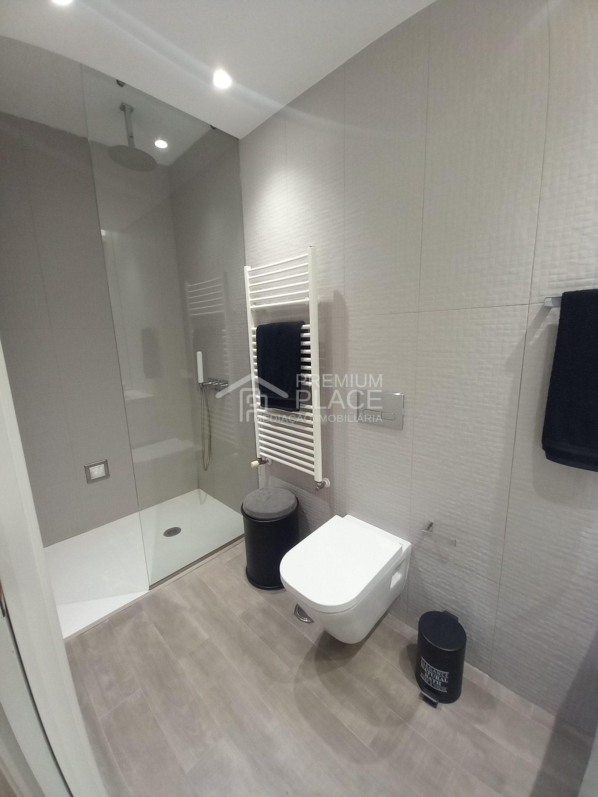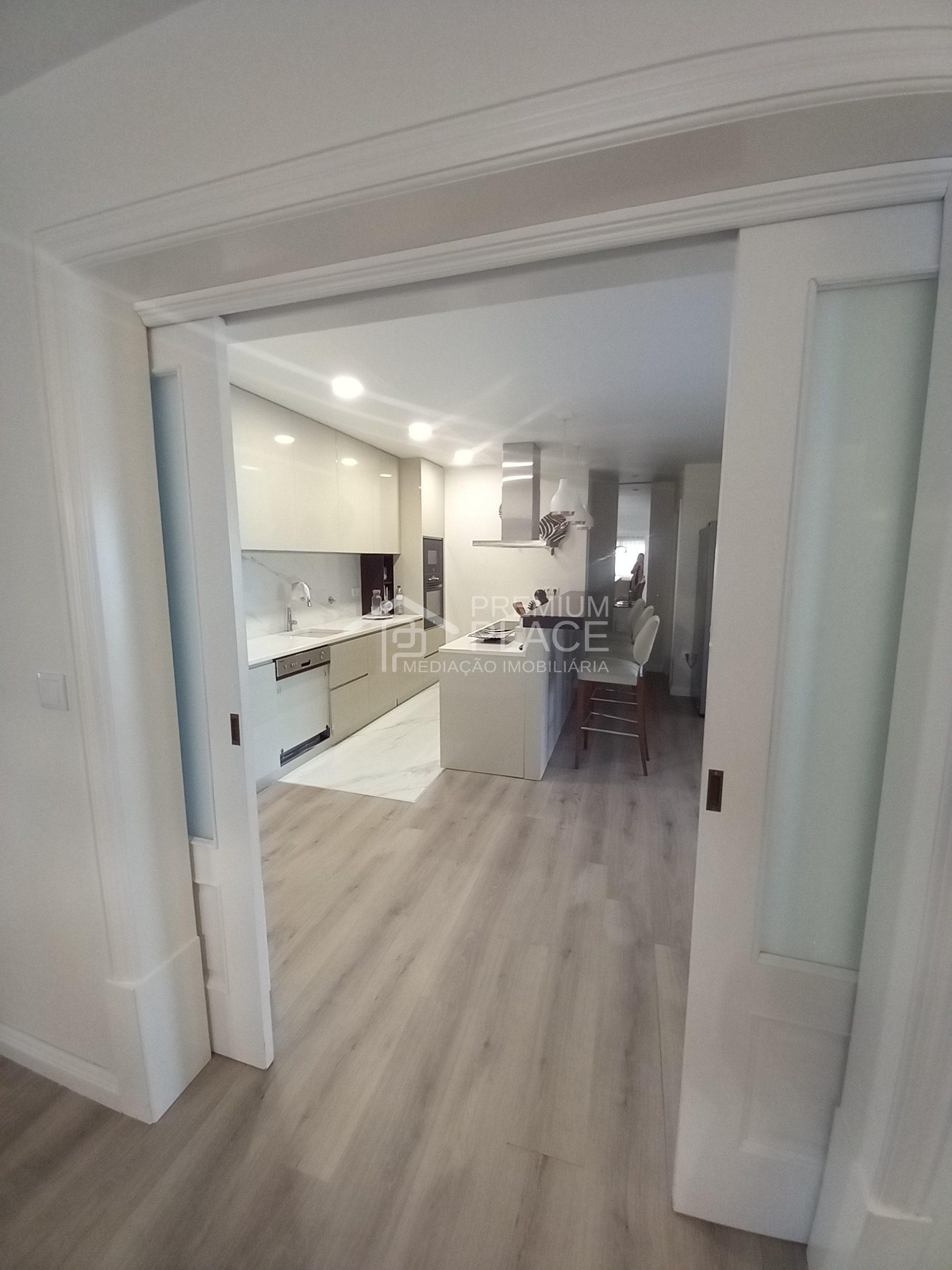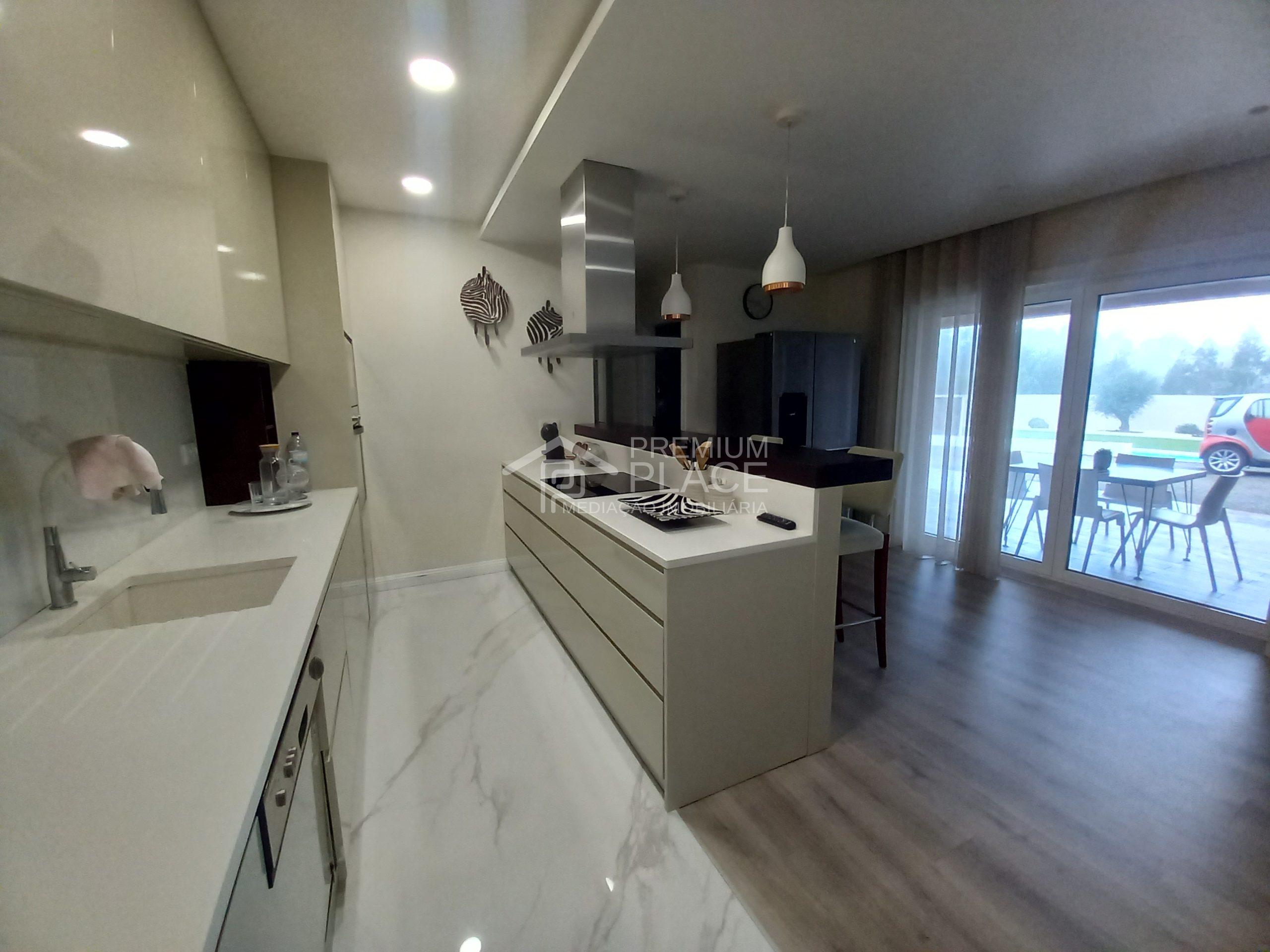 1 cozinha moderna com uma ilha no meio, totalmente equipada; 1 casa de banho social; 1 quarto c/suíte e c/ closet.