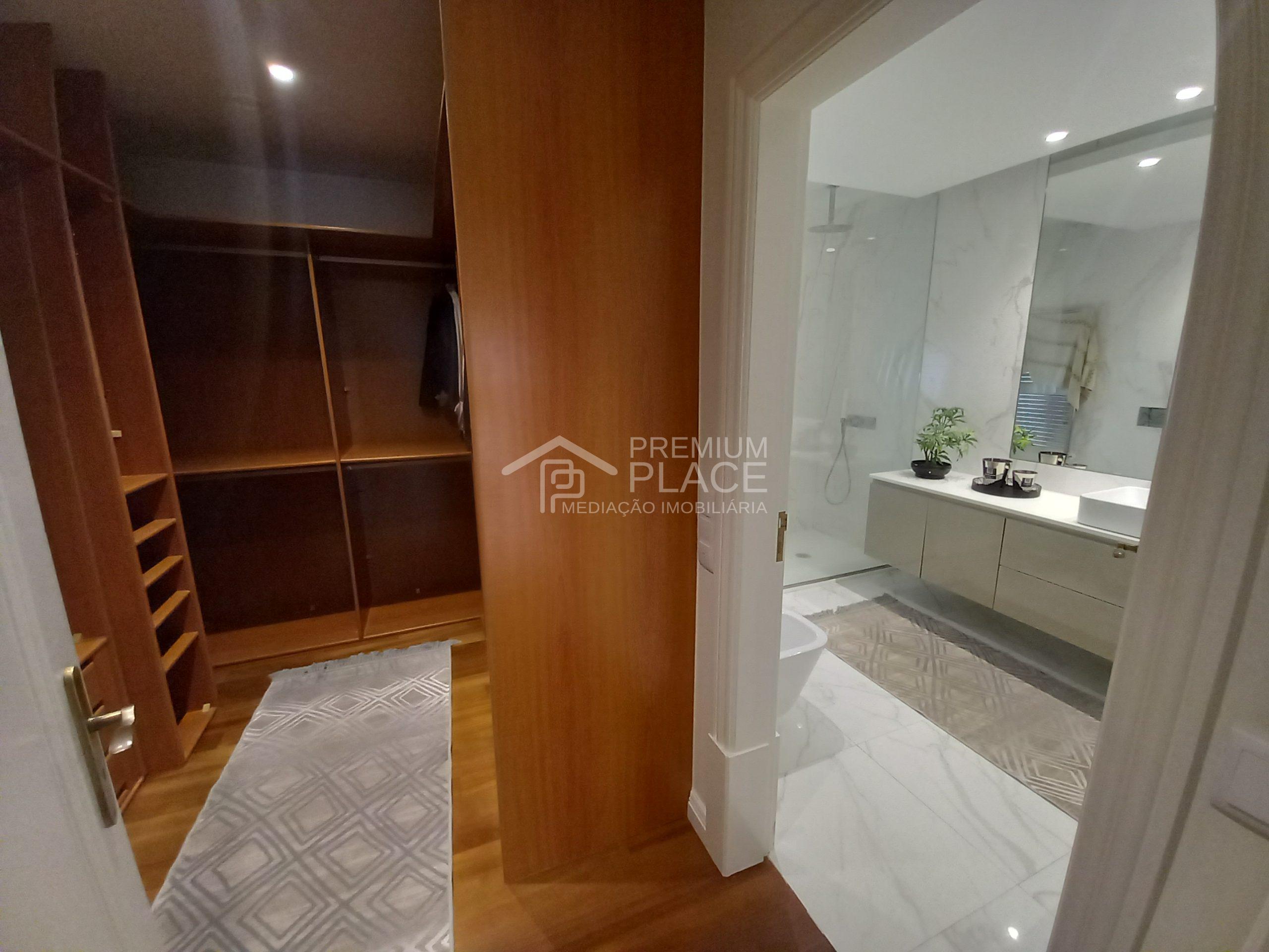 1 corredor amplo; 2 quartos – suíte c/base duche e closet em que apenas um tem acesso ao um grande terraço; 1 quarto – suíte com banheira e closet.