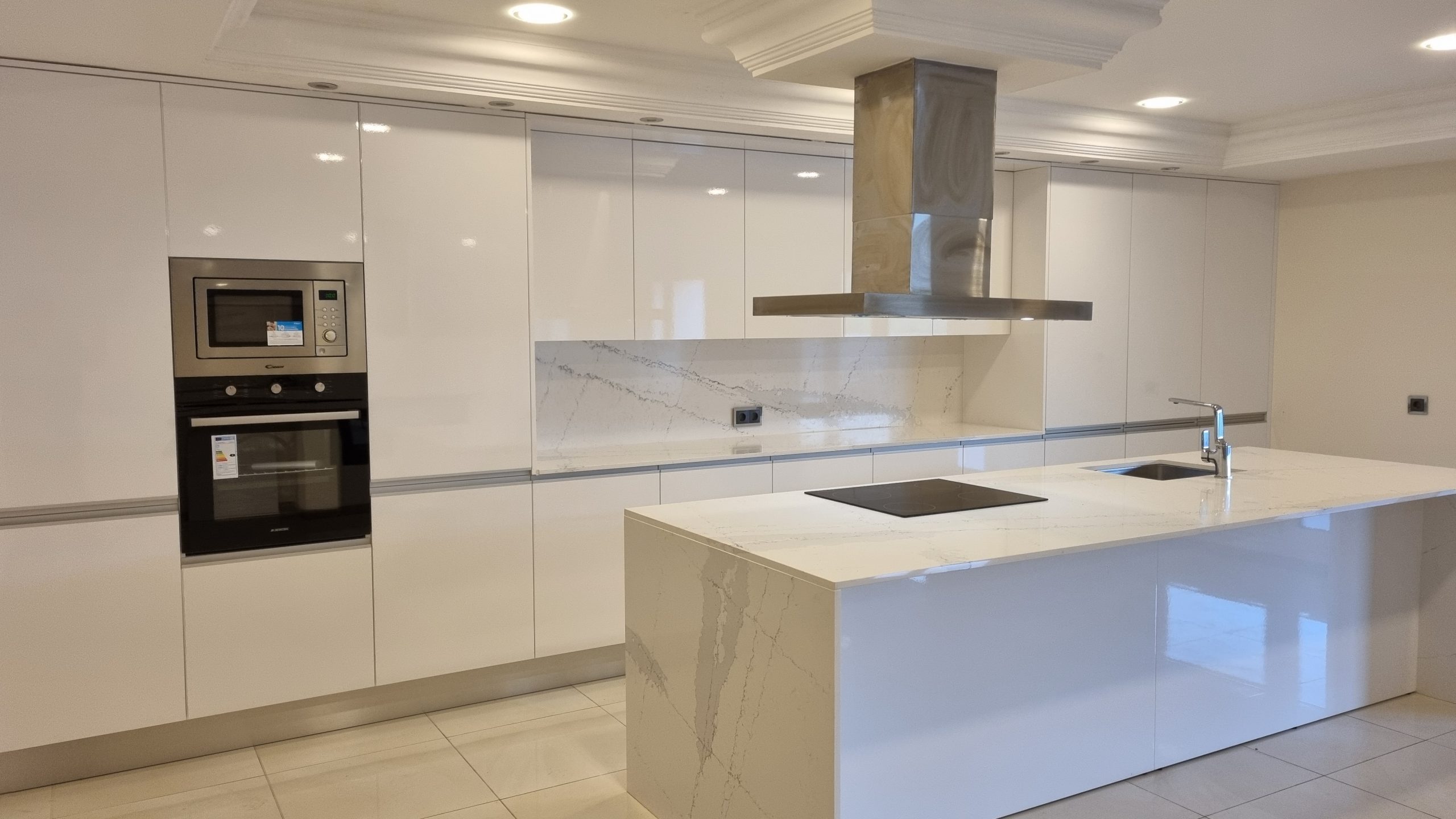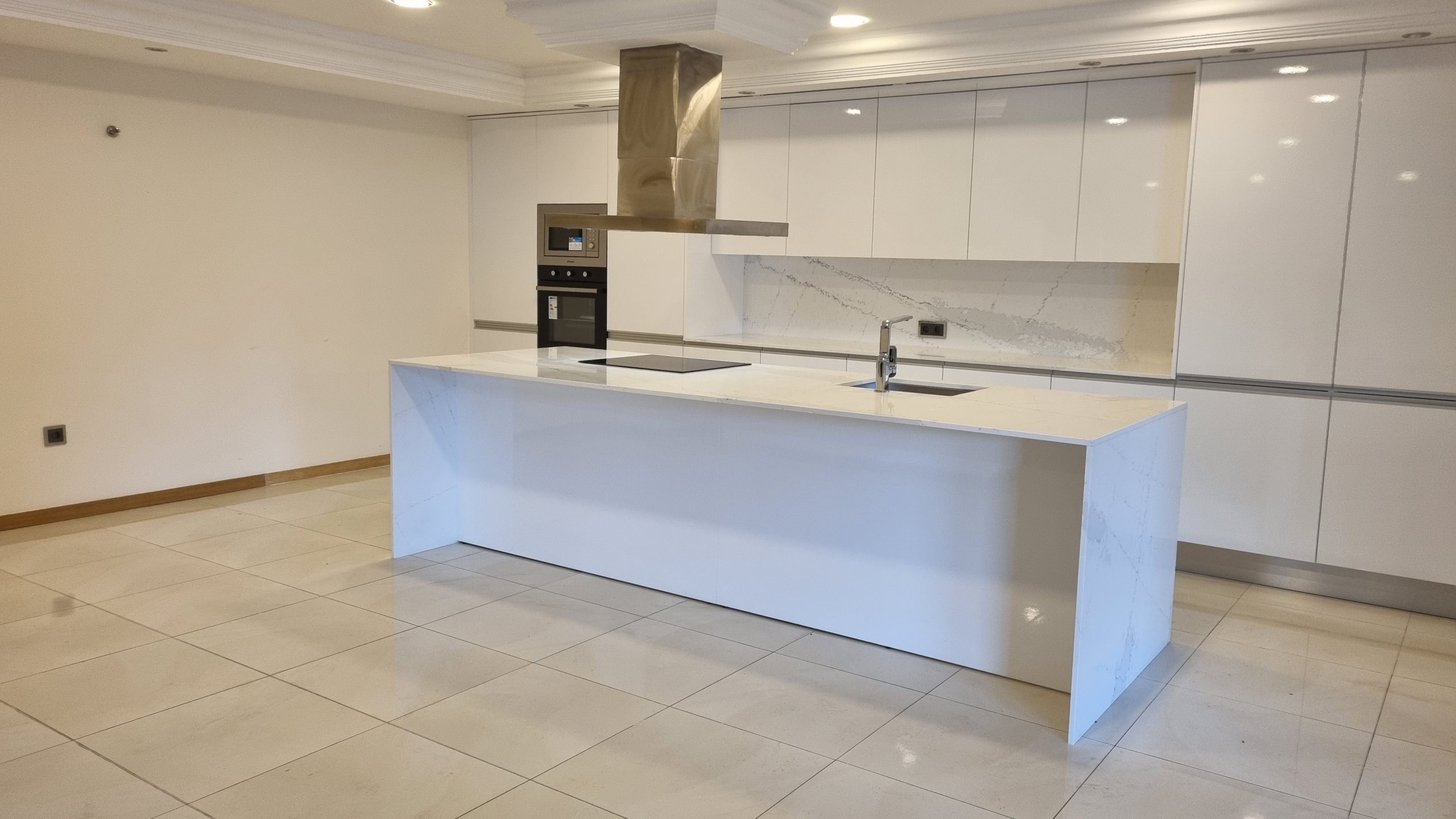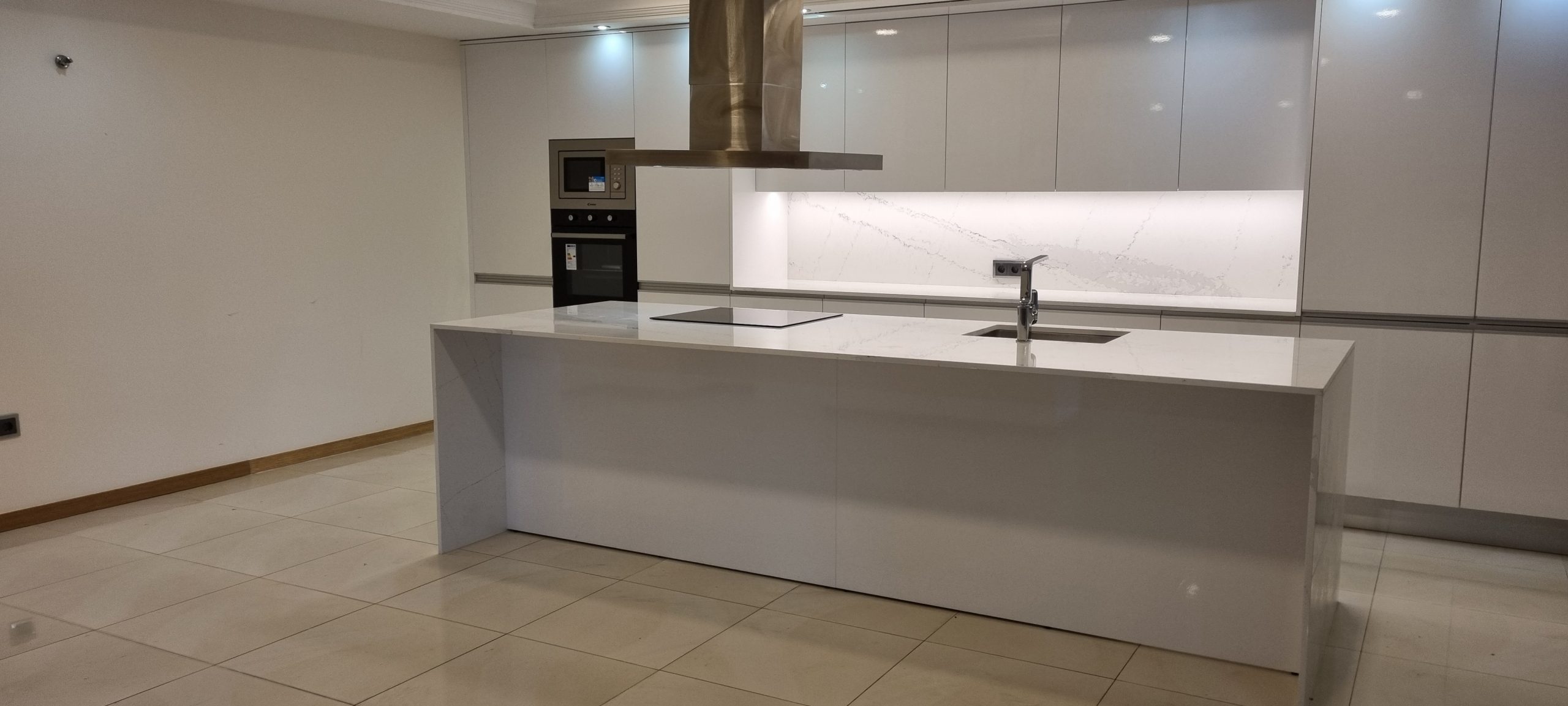 - Cozinha equipada com placa, forno, exaustor e móveis funcionais