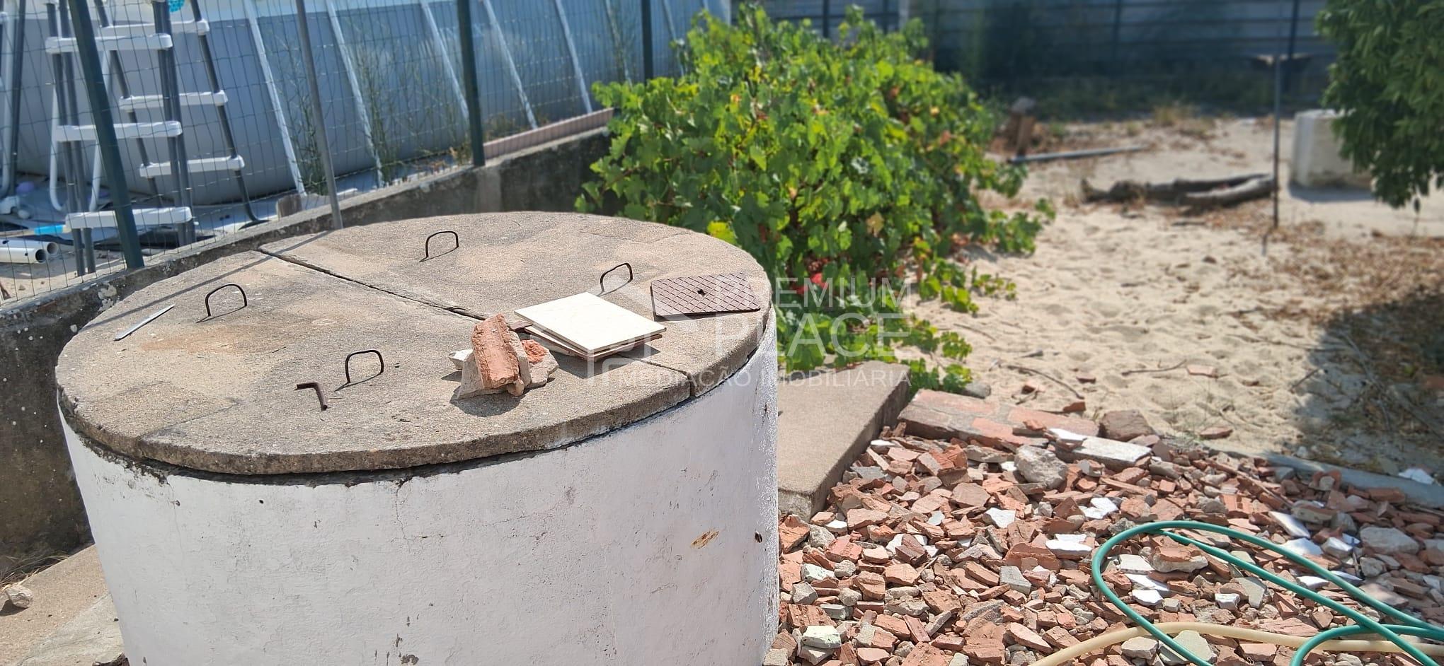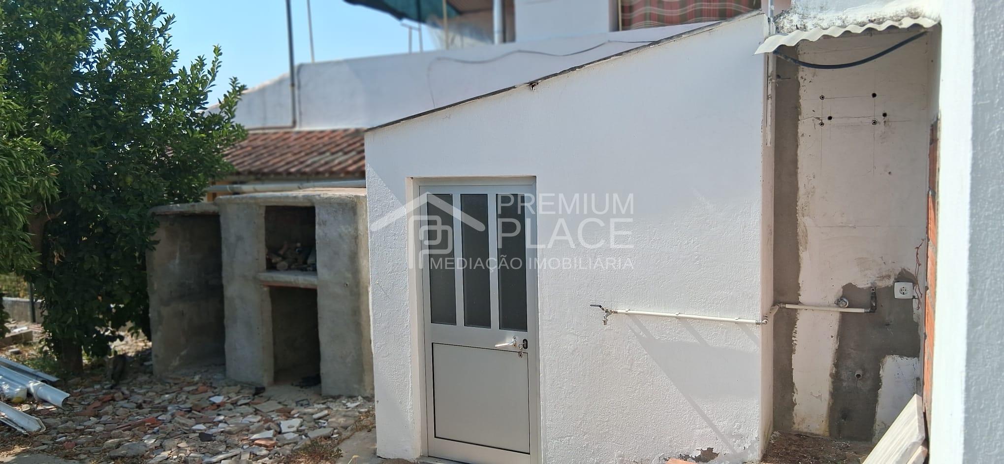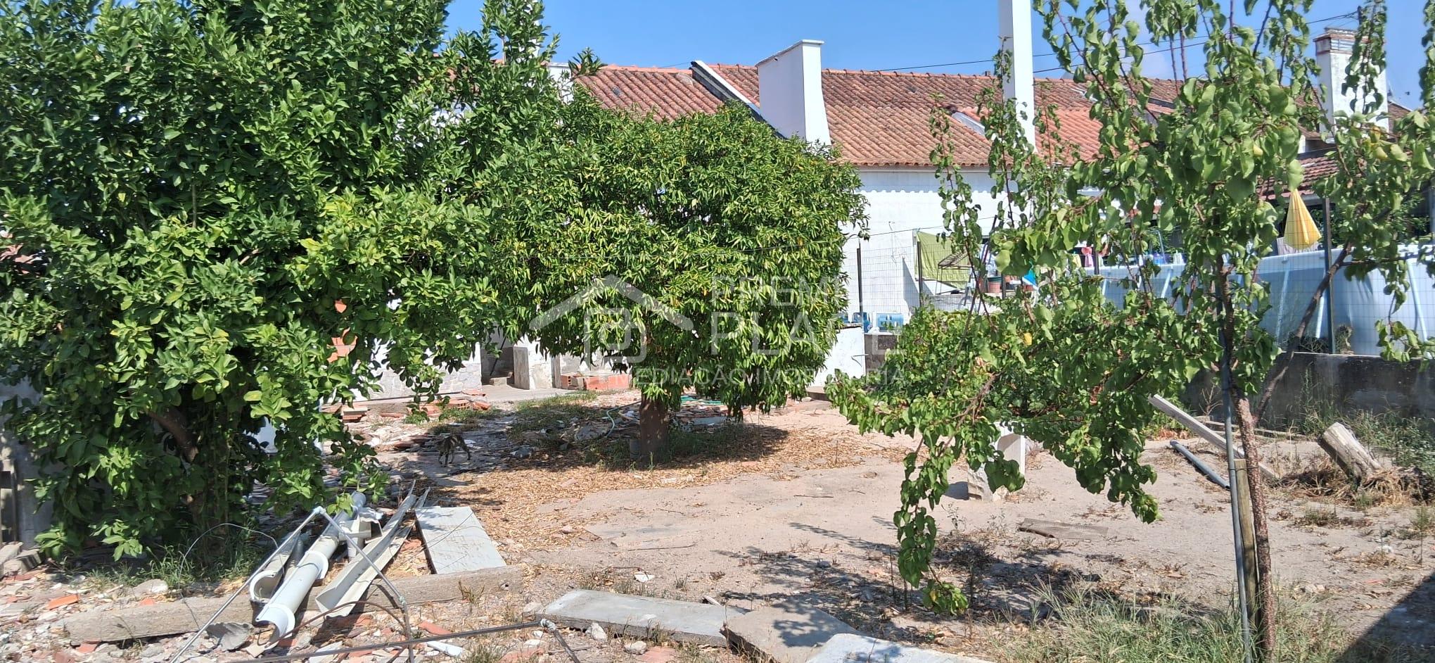 A moradia contem um logradouro com poço, um quintal com algumas arvores de fruto e uma arrecadação.